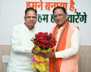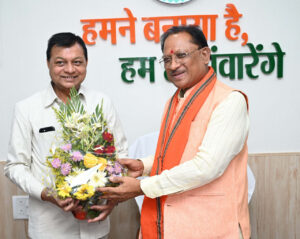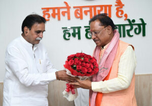 राजधानी रायपुर स्थित मुख्यमंत्री निवास में आज शिक्षा मंत्री श्री बृजमोहन अग्रवाल, उद्योग मंत्री श्री लखनलाल देवांगन, वित्त मंत्री श्री ओ. पी. चौधरी, वन मंत्री श्री केदार कश्यप, राजस्व मंत्री श्री टंकराम वर्मा, विधायक सर्वश्री पुन्नूलाल मोहिले, संपत अग्रवाल, अनूज शर्मा, श्रीमती भावना बोहरा, श्री अमर अग्रवाल, श्री राजेश मूणत सहित अनेक जनप्रतिनिधि और प्रदेश के विभिन्न स्थानों से आए लोगों ने बड़ी संख्या में पहुंचकर मुख्यमंत्री श्री विष्णु देव साय को जनहितैषी फैसलों और मोदी की अधिकांश गारंटियों को पूरा करने के लिए आभार जताया। प्रदेश के विभिन्न इलाकों से आये लोगों ने तीन माह के कार्यकाल में प्रदेशवासियों के हित के लिए समर्पित होकर कार्य करने के लिए मुख्यमंत्री को बधाई और शुभकामनाएं दी।