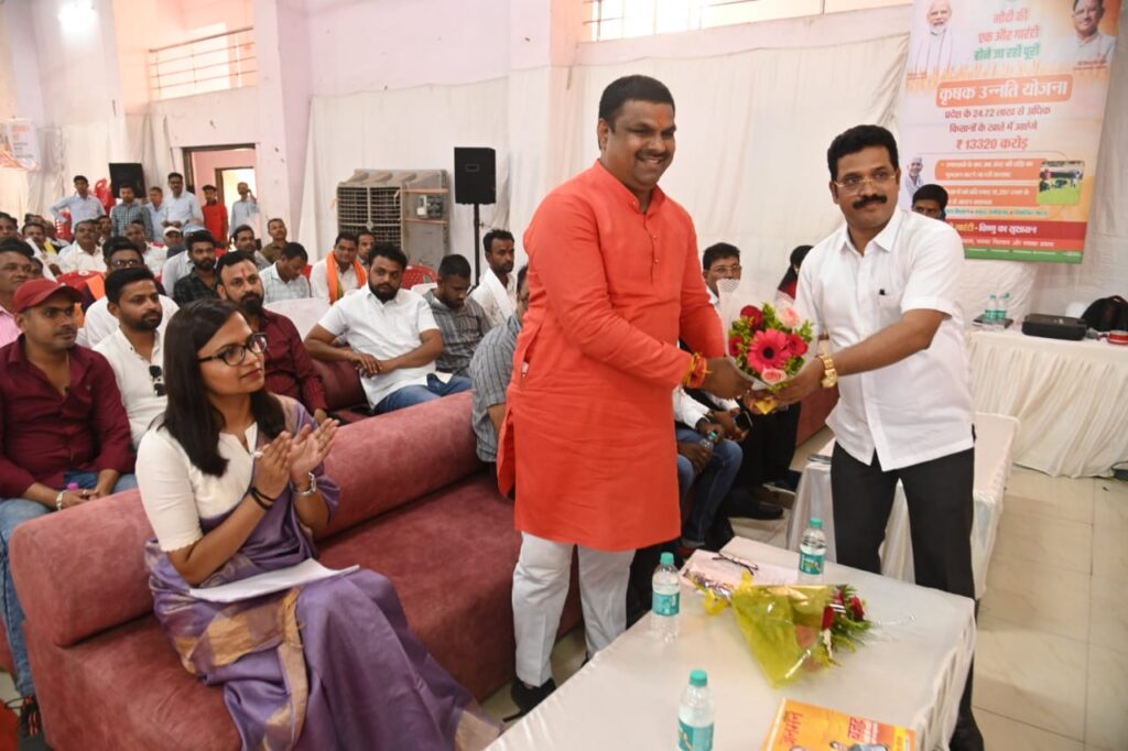 विवेकानंद सभागार में आयोजित कार्यक्रम के मुख्य अतिथि विधायक गजेंद्र यादव ने कहा की प्रदेश के किसान उन्नत और खुशहाल हो यही भाजपा का ध्येय है। डबल इंजन की सरकार समाज में प्रदेश के किसानों का विशेष ध्यान रखते गया है। छत्तीसगढ़ में कृषक उन्नति योजना के तहत किसानों के खाते में आज अंतर की राशि सीधे खाते में भेजकर भाजपा सरकार ने विधानसभा चुनाव में किये वादे को पूरा किया है। छत्तीसगढ़ की विष्णुदेव साय की सरकार ने किसानों को बड़ी सौगात दी है।