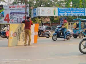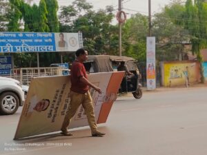 निगम प्रशासन हरकत में राजनीतिक दलों के होर्डिंग व बैनर प्रचार सामग्री को उतरने शुरू हुआ अभियान…