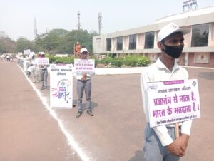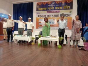 लोकसभा निर्वाचन-2024 आदर्श आचार संहिता प्रभावशील होने के फलस्वरूप जिले में 18 वर्ष एवं अधिक उम्र के लोगो को अपने मताधिकार का प्रयोग निश्चित रूप से करने एवं लोकतंत्र के पर्व में सहभागिता बनने के उद्देश्य से स्वीप कार्यकम के तहत जिला निर्वाचन अधिकारी एवं समाज कल्याण विभाग के समन्वय से जिले के दिव्यांगजन, वरिष्ठ नागरिक एवं उभयलिंगी समुदाय के व्यक्तियों तथा विभाग द्वारा अनुदानित संस्थाओं ब्राईट शिक्षण एवं मानव कल्याण समिति दुर्ग, प्रयास श्रवण विकलांग संस्थान सुपेला भिलाई, त्रिविधा विकास समिति भिलाई, तुलसी लोक विकास संस्थान भिलाई, मानवता लायंस बोरसी, स्नेह संपदा विद्यालय भिलाई के दिव्यांग छात्र-छात्राओं एवं वृद्धाश्रम के वरिष्ठजनों को सम्मिलित कर 04 अप्रैल 2024 को कलामंदिर परिसर, सिविक सेन्टर भिलाई में मतदाता जागरूकता कार्यक्रम का आयोजन किया गया।