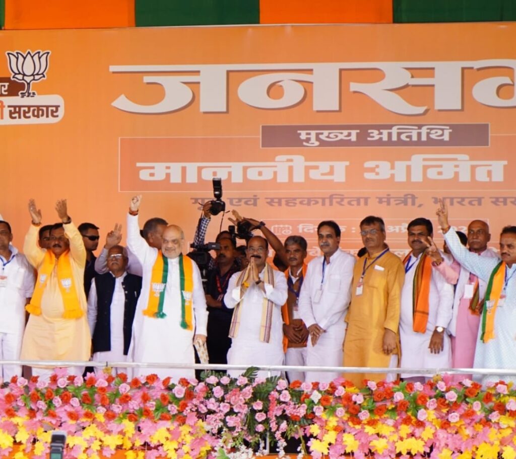 बेमेतरा में सभा से जनता को सम्बोधित करते हुए गृहमंत्री अमित शाह ने जनता को सम्बोधित करते हुए तीसरी बार मोदी सरकार में छत्तीसगढ़ को विकसित बनाने भरोसा दिलाये। छत्तीसगढ़ में डबल इंजन की सरकार बनने से बस्तर शांत है।
