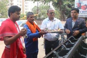 बुधवार दिनांक 15-05-24 प्रथम पूज्य देव रिद्धी- सिद्धी दायक लम्बोदर महाराज की पूजा आराधना कर अतरझोला मोहगांव बेमेतरा के कृषक राजेश कुमार सोनकर ने अपने इष्ट मित्रो, परिवारजनों के साथ कमला मोटर्स दुर्ग में पहुंचकर देश के कृषको की विश्वसनीय उधयोगिकी मलारकोटला पंजाब द्वारा निर्मित बहुफसलीय सेल्फ प्रपोल्ड कंबाइन हार्वेस्टर मशीन की खरीददारी कर अपने परिवार को आर्थिक समृद्धि की ओर अग्रसर किये।