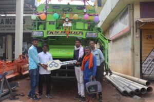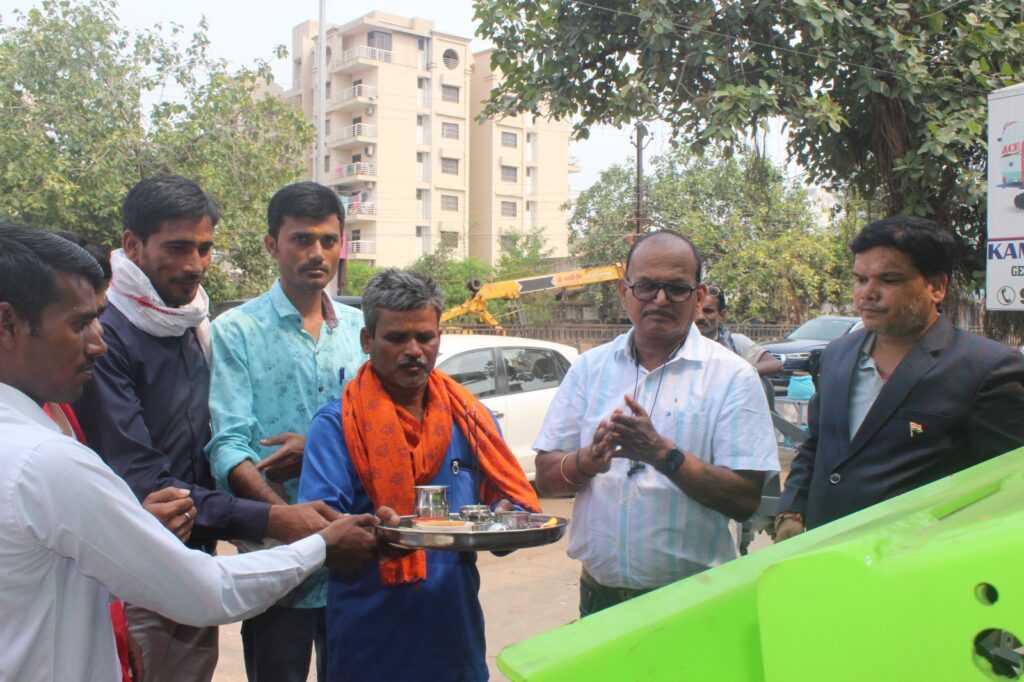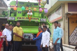मशीन की चाबी प्रदान करते हुऐ शहर के प्रतिष्ठित वरिष्ट सिविल इंजिनियर अरविन्द ताम्रकार एवं कमला मोटर्स के सेल्स प्रमोटर सत्य श्री लक्ष्मी नारायण चंद्राकर, शाखा प्रबंधक खेमचंद गुप्ता, मैकेनिक किशोर निशाद, स्वागतकरता श्रीमति नंदिता सावंत, पुजारी जयदीप सावंत, एवं के.एस. ग्रुप ऑफ़ कंपनी के वरिष्ट पर्यवेक्षक दिलशाद खान, सहायक पर्यवेक्षक इरफ़ान मोहम्मद, सुल्तान खान यंत्र ग्रहण करते हुये कृषक राजेश सोनकर, मेघनाथ सोनकर, डेलेन्द्र सोनकर, अजय सोनकर, गजानंद वर्मा इत्यादि साथीगण उपस्थित रहे।