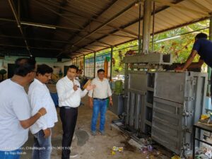 निरीक्षण के दौरान स्वास्थ्य विभाग के प्रभारी हमीद खोखर,पार्षद भास्कर कुंडले,ईई दिनेश नेताम, स्वास्थ्य अधिकारी जावेद,उपअभियंता पंकज साहू,सुपर वाइजर आशीष बघेल मौजूद थे।महापौर के निरीक्षण के दौरान एसएलआरएम सेंटर में एकत्रित कर कचरों का पृथक्कीकण के बाद सूखे कचरे से प्राप्त पॉलीथीन को बेलिंग मशीन से बंडल बनाकर निष्पादन हेतु भेजा जा रहा है।